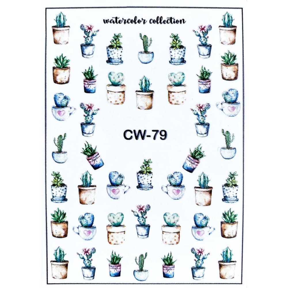 Крім того, асортимент вражає різноманіттям вибору, де кожен знайде елемент доповнення манікюру на свій смак. Слайдер CW-79 містить фігурні малюнки кактусів, які стануть стильним акцентом на нігтях.