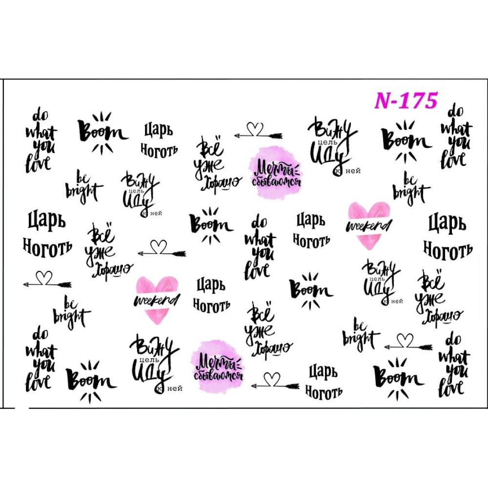 Слайдер дизайн являє собою тонку плівку, яка під впливом води легко відокремлюється від підкладки і переноситься на нігтьову пластину. Завдяки тому, що плівка дуже тонка, вибрані зображення або візерунки добре лягають на ніготь, не створюють нерівностей і практично не відрізняються від ручного розпису. Слайдер дизайн настільки простий і легкий спосіб декорування нігтів, що абсолютно не втрачає позицій в рейтингу популярності вже багато років. Додатковою перевагою способу є багатий вибір малюнків і орнаментів. Слайдер дизайн N-175 містить принти, які допоможуть урізноманітнити будь-який варіант нейл-арту.
