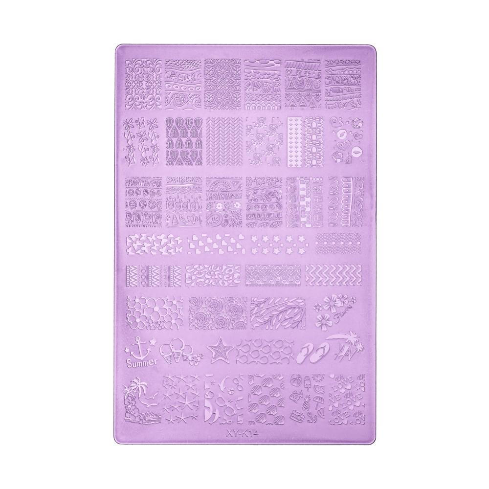 KODI PROFESSIONAL пропонує широкий асортимент матеріалів для виконання дизайну в техніці стемпінг, а також інших техніках. Пластина для стемпінга К14 має розмір 9,5 х 14,5 см і виконана з міцного пластику фіолетового кольору. Дана пластина має оптимальну глибину гравіювання і містить більше 40 оригінальних візерунків і малюнків.