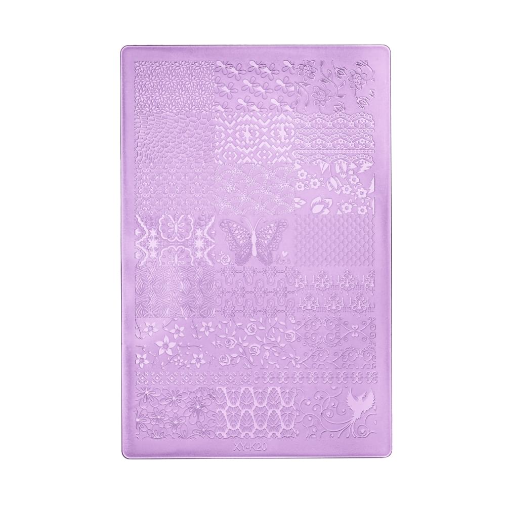 В асортименті KODI PROFESSIONAL міститься великий вибір матеріалів для стемпінга. Пластина для стемпінга К20, розміром 9,5 х 14,5 см, виконана з міцного пластику фіолетового кольору і містить більше 20 візерунків різноманітної тематики. Будь-який з представлених на пластині візерунків дозволить створити справді оригінальний дизайн.