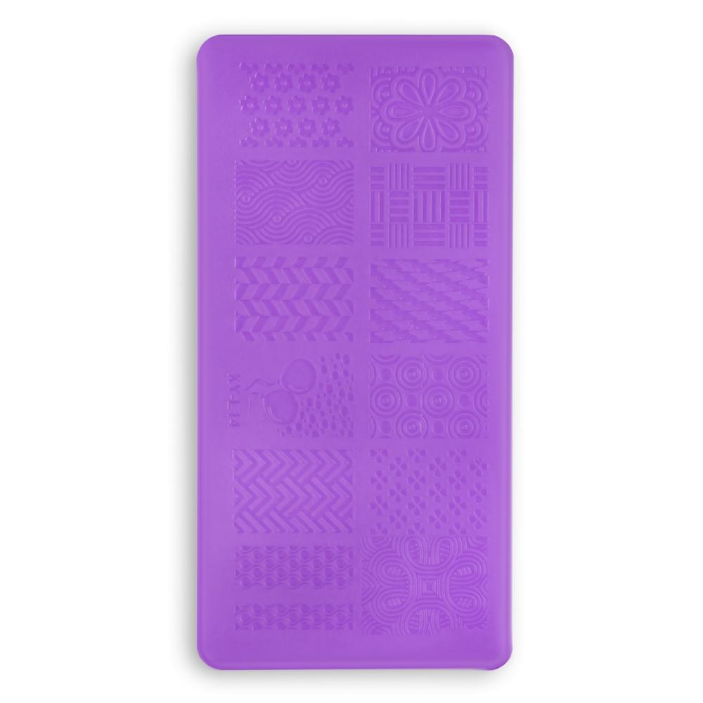 KODI PROFESSIONAL пропонує широкий вибір пластин для стемпінга з різною тематикою. Пластина для стемпинга L14 має розмір 6х12см, відрізняється якісним різьбленням візерунків і виконана з щільного пластику фіолетового кольору. На представленій пластині розміщені 12 орнаментів, переважно геометричного типу.