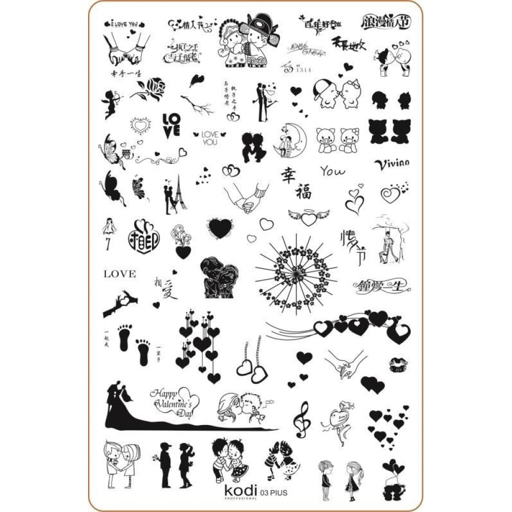 Пластина №03 з серії Plus size виконана з металу і містить велике різноманіття малюнків у любовній тематиці – все для створення оригінального романтичного нейл-арту. Ви можете використовувати один або відразу декілька елементів з пластини.